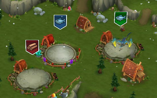New indicators now appear under the Fish, Wood, and Iron storages in the top menu to show how many dragons are currently gathering each resource. These counters disappear once your Sawmills, Fish Huts, or Iron Smithy are full.
